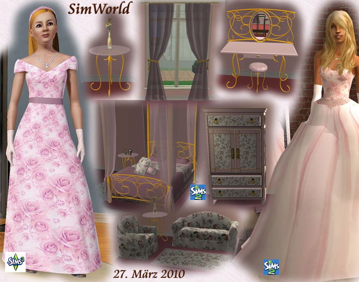Sims 3 - Hochzeitskleid "Rose" Sims 2 - Hochzeitskleid "Rose" und Schlafzimmer "Wendy"