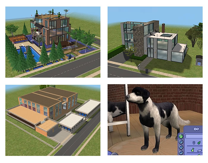 Ein modernes Haus von Stoffel, ein großes Haus von alex, ein süßer Hund von Fibo und ein tolles Geschäftshaus von Bommel (Freggi) zu dem sie folgenden Text abgegeben hat: