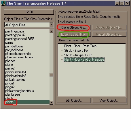 Man öffnet den Transmogrifier und sucht den Eintrag Plants2 (den gibts nur, wenn man "Das volle Leben" installiert hat) und clont Plant-Floor-Birds of Paradise.